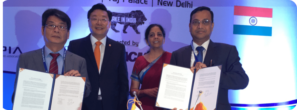 in the presence of the then Hon’ble Ministers of both the Countries namely Ms. Nirmala Sitharaman, Minister of Commerce & Industry, Government of India and Mr. Hyung – Hwan Joo, Minister of Trade, Industry & Energy, Republic of Korea.